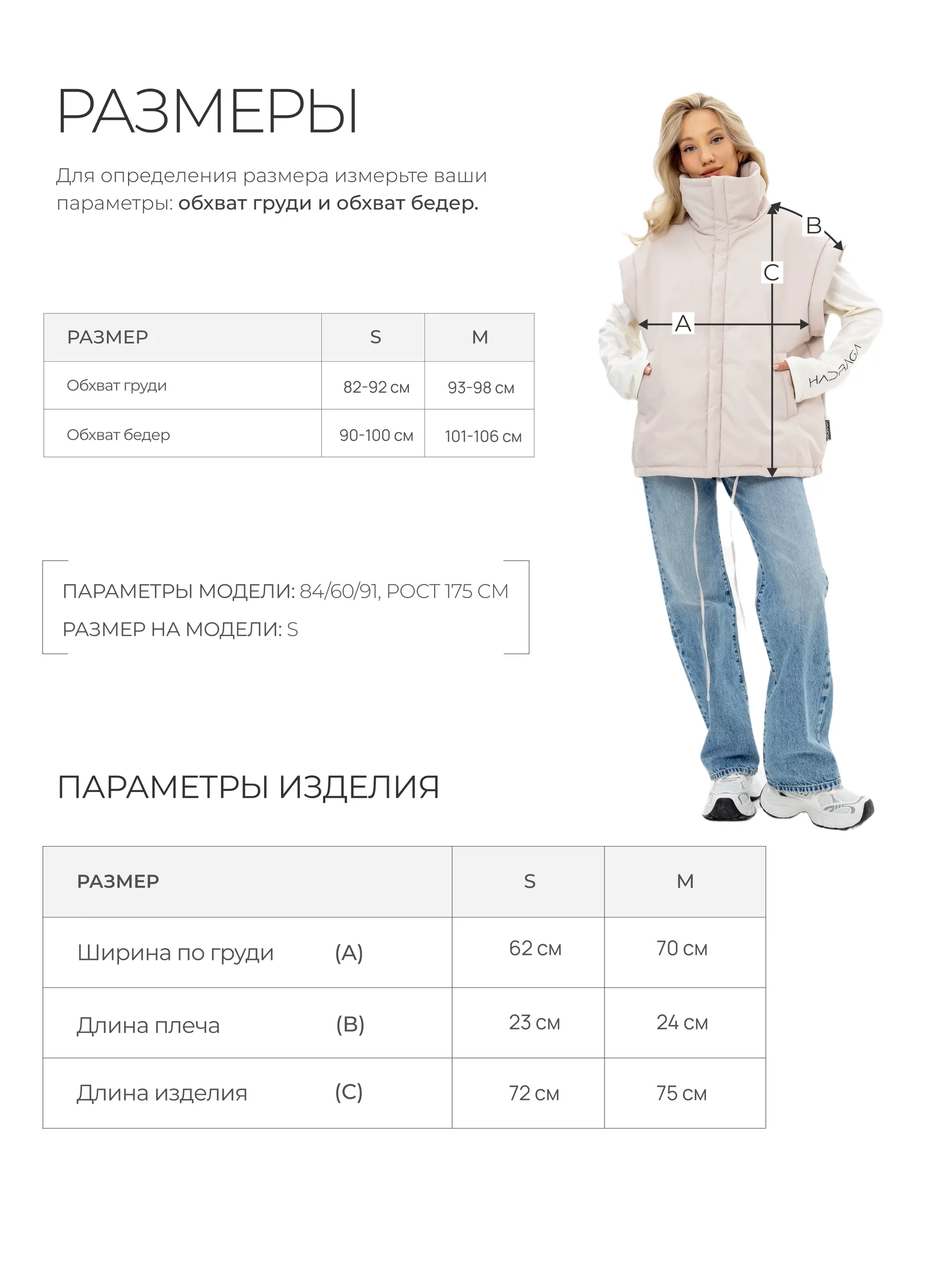 Параметры модели: ОГ 84 см, ОТ 60 см, ОБ 91 см. Рост 175 см. На модели размер M (Oversize)