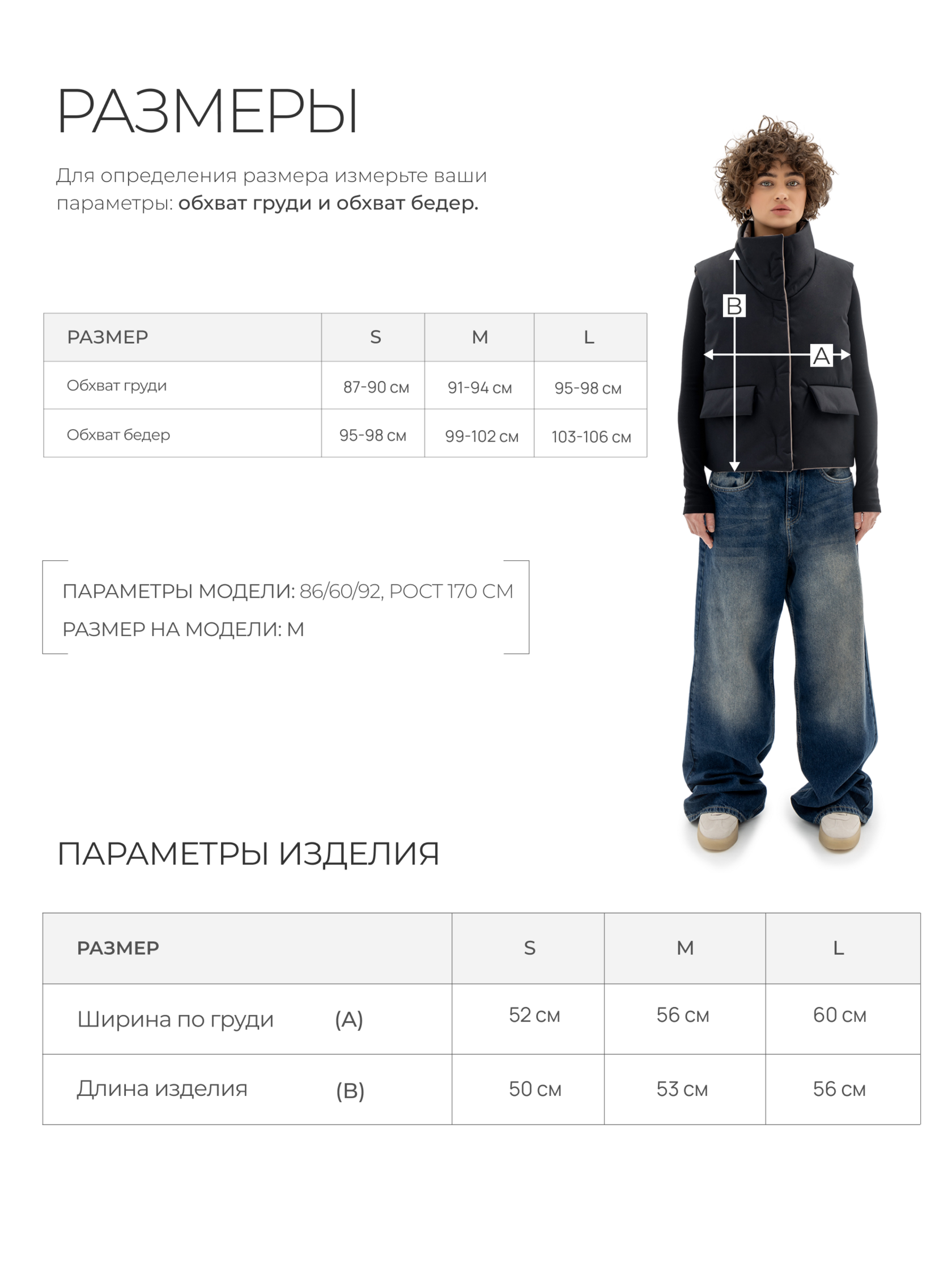 Параметры модели: ОГ 86 см, ОТ 60 см, ОБ 92 см. Рост 170 см. На модели размер М