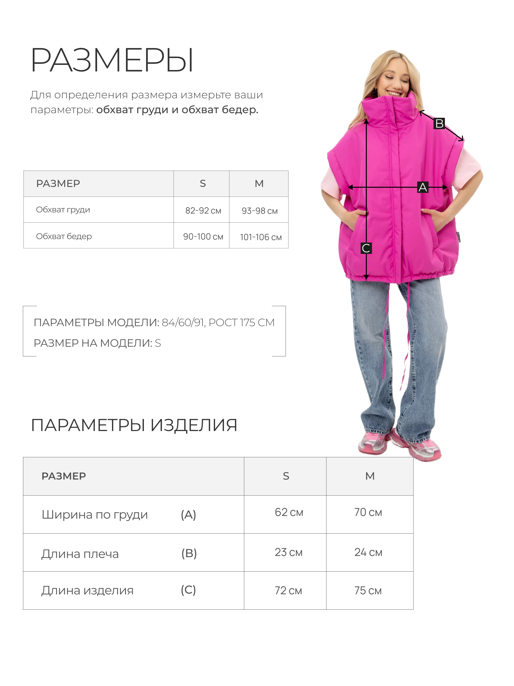 Параметры модели: ОГ 84 см, ОТ 60 см, ОБ 91 см. Рост 175 см. На модели размер M (Oversize)