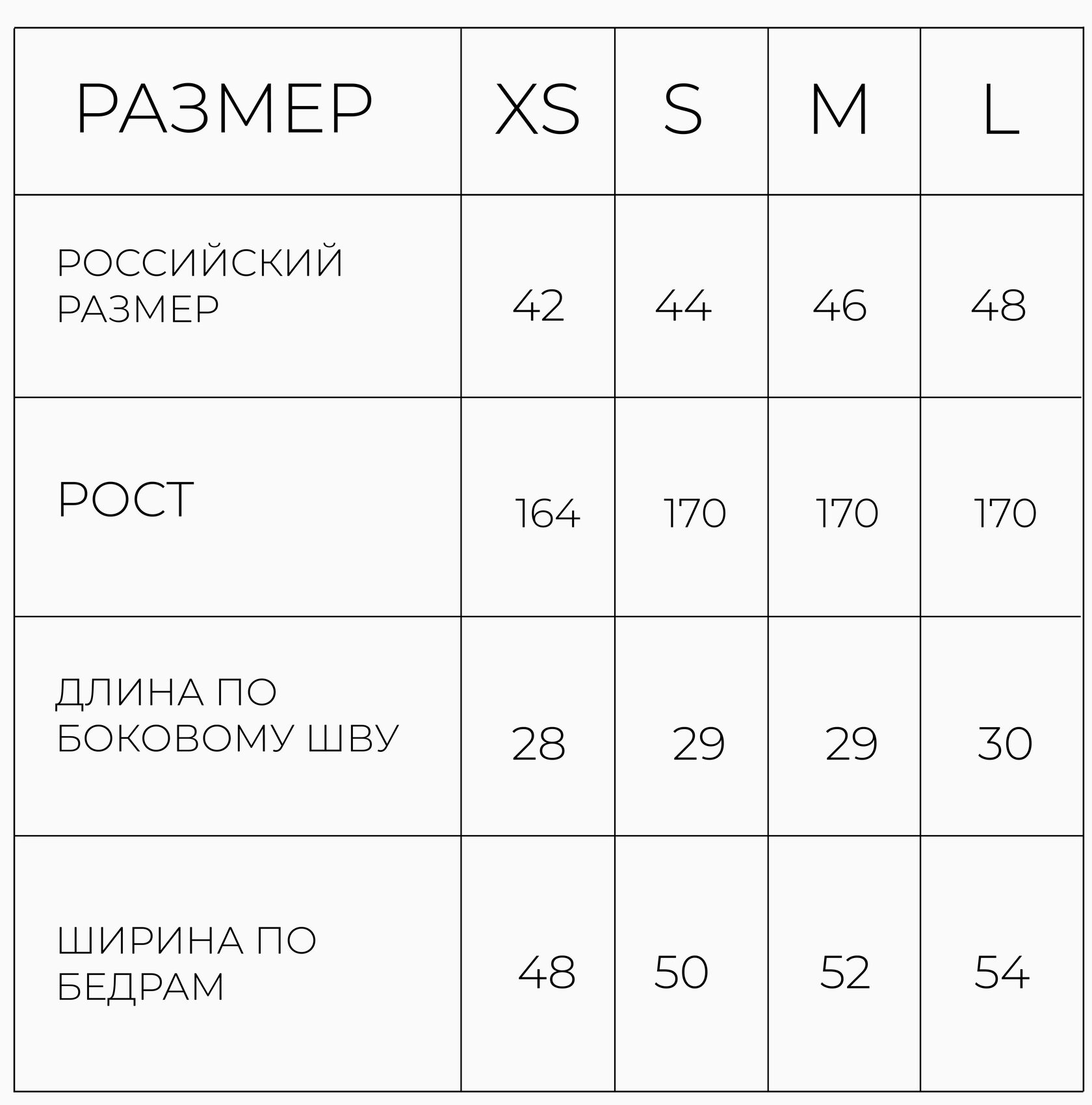 РАЗМЕРНАЯ СЕТКА ЮБКА-ПОЯС